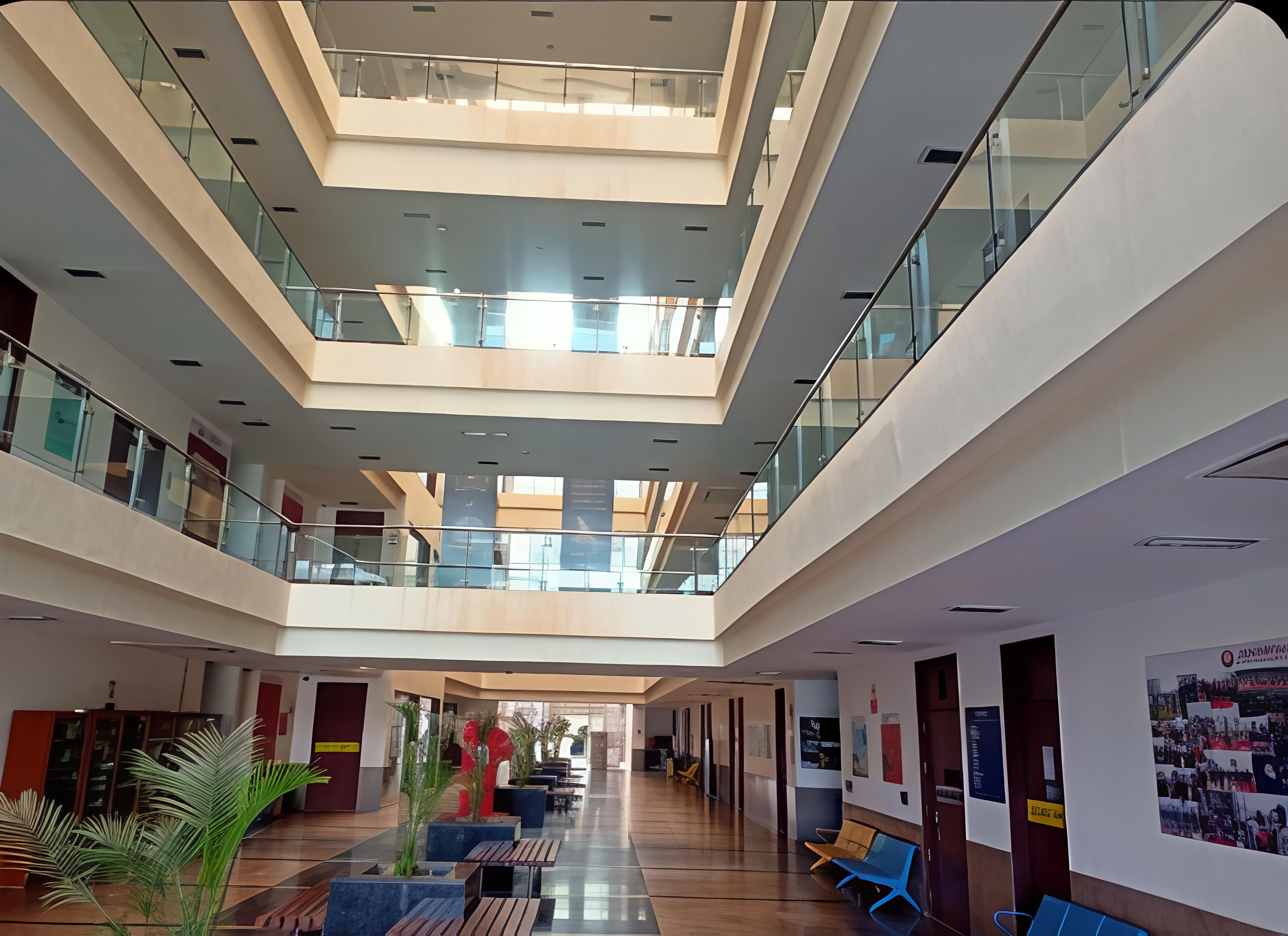 Auditorium, seminar halls, gym, post office, saloon, ATMs